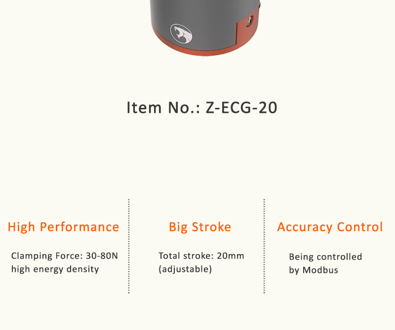 The ECG-20 Electric 3-finger Gripper (Item No. Z-ECG-20) is a high-performance, compact gripper designed to handle cylindrical objects with ease. It is widely used in automation and robotic applications, offering precise control, adjustable clamping force, and efficient integration into various systems.